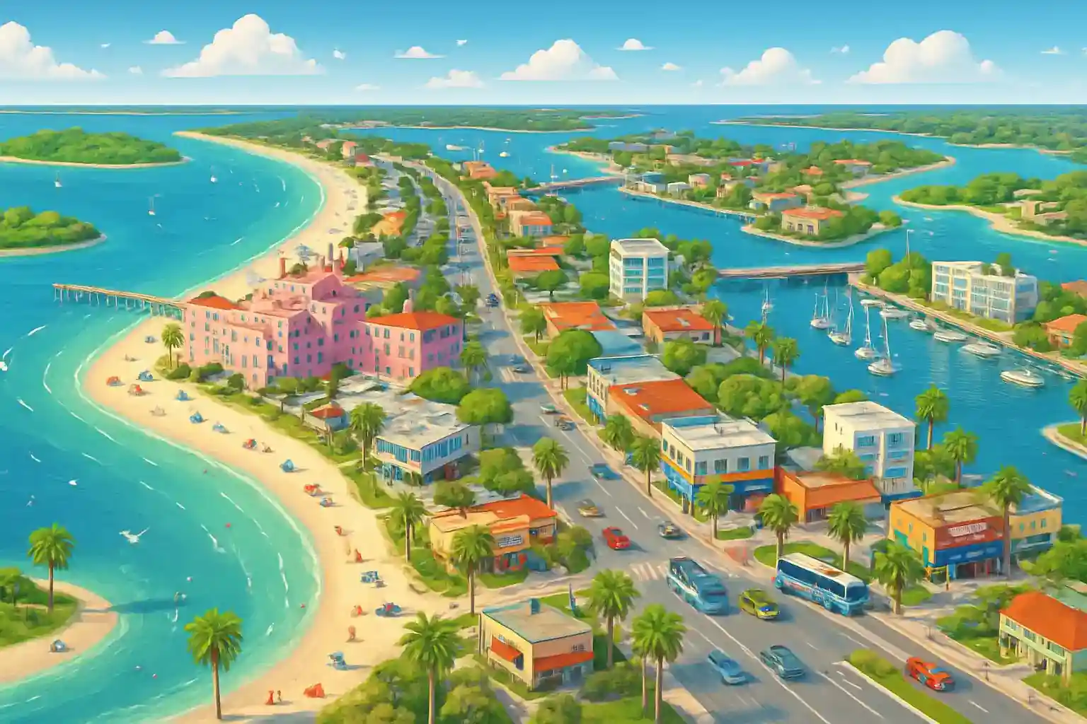 Petersburg and its world-famous Salvador Dalí Museum. Fort De Soto Park, ranked among the USA's best beaches, is just 15 km south via Pinellas Bayway. Avoid driving over Corey Causeway during rush hour—traffic toward the mainland can be at a standstill for 30–45 minutes.