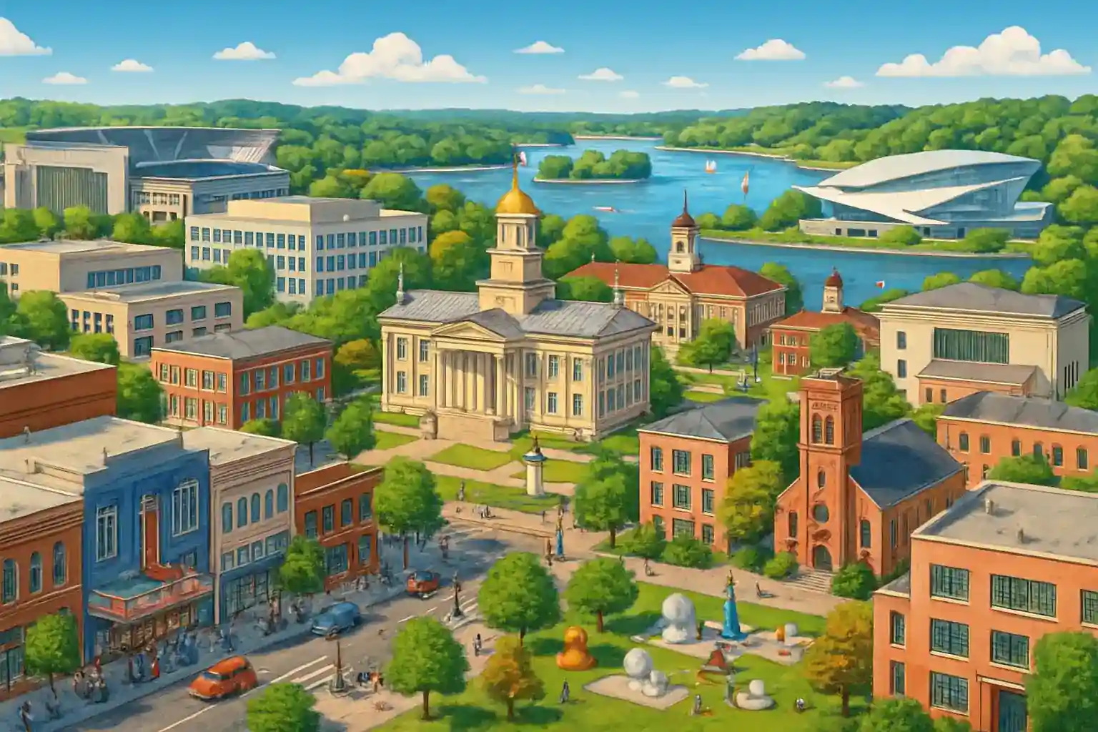 Parking in the center is limited – ask the rental company for the nearest parking garage. How far is it from Iowa City to Cedar Rapids? It's approximately 45 km north via I-380, about 30–35 minutes' drive.