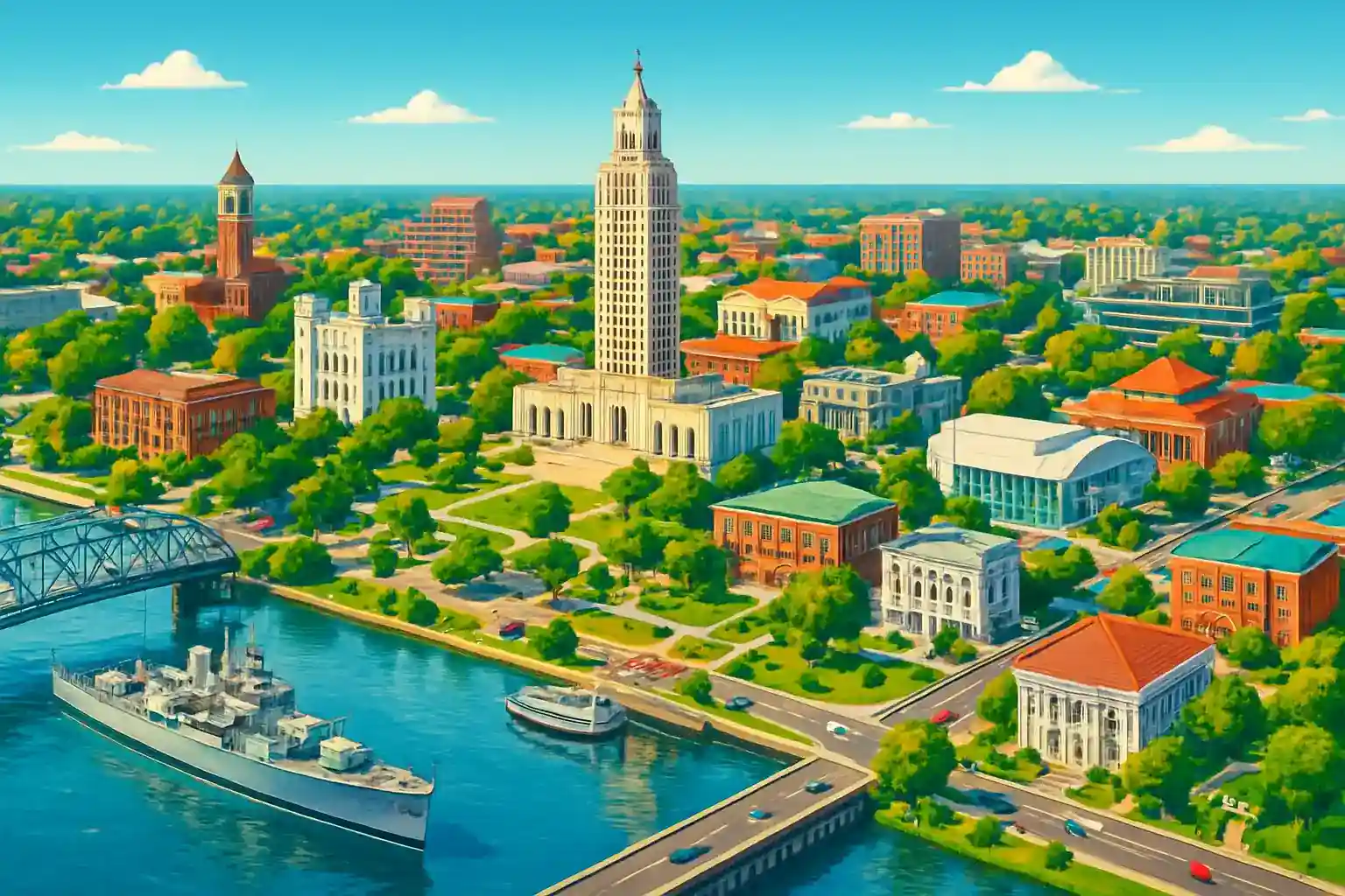 Baton Rouge Metropolitan Airport (BTR) is located 12 km north of downtown and is Louisiana's second-largest airport with seven car rental companies – the best selection in the state outside of New Orleans. Direct flights are available to Atlanta, Dallas, Chicago, and Miami, making BTR an excellent entry point for a Louisiana road trip. The rental desks are consolidated in a dedicated car rental center adjacent to the terminal.