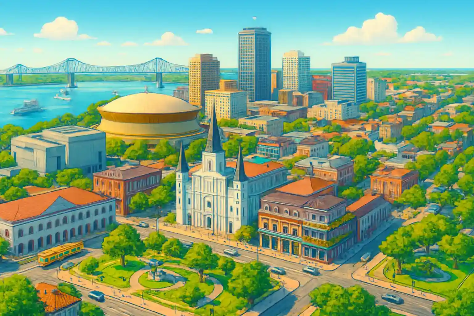 We compare prices from all major providers at New Orleans Center so you can see the total cost upfront — including insurance, fuel terms and any extras. Most bookings include free cancellation up to 48 hours before pickup, giving you flexibility if your plans change.