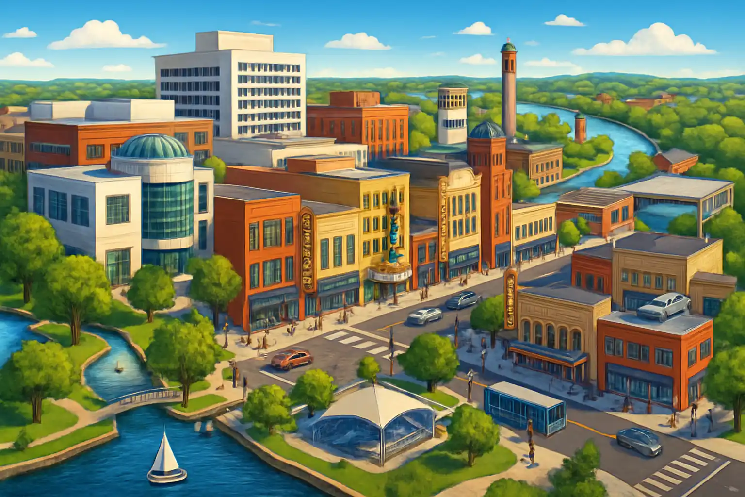 Kalamazoo/Battle Creek International Airport (AZO) is located approximately 10 km south of Kalamazoo city center and is served by 6 car rental companies directly in the terminal. The airport is an excellent starting point for exploring southwestern Michigan, including the wine region along Lake Michigan. From here, it's approximately 75 km west to South Haven and Lake Michigan's beaches, and just 50 km east to Battle Creek.