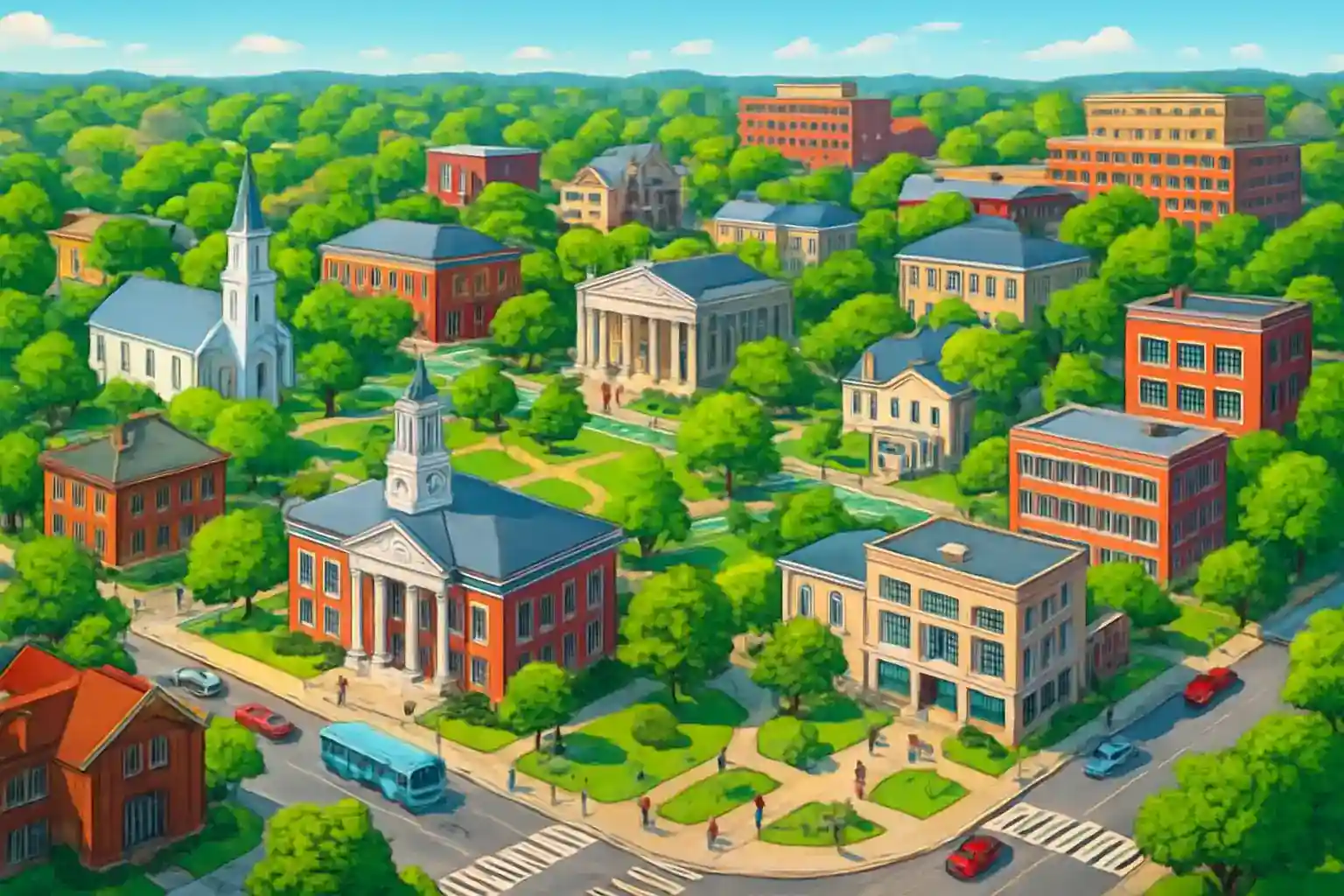 Morristown Green is the town's heart and is surrounded by historic buildings, museums, and cafés within walking distance. Jockey Hollow National Historical Park is just 8 km southwest of the center and is a must for history enthusiasts. Newark Liberty International Airport is reached in approximately 45 minutes via I-287.
