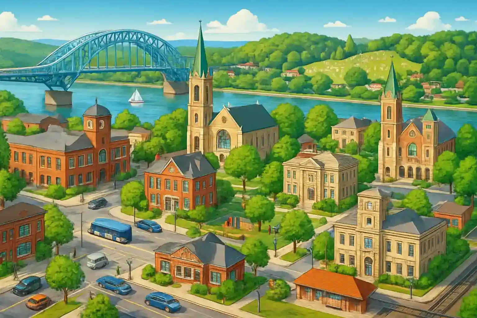 Coraopolis in Allegheny County is strategically located near Pittsburgh International Airport, just 5 km north, and is a popular car rental choice with 2 rental companies in the downtown area. The community along the Ohio River offers easy access to Pittsburgh downtown, about 20 km east via PA-60 and I-376. It's a cost-effective alternative to picking up a car directly at the airport.