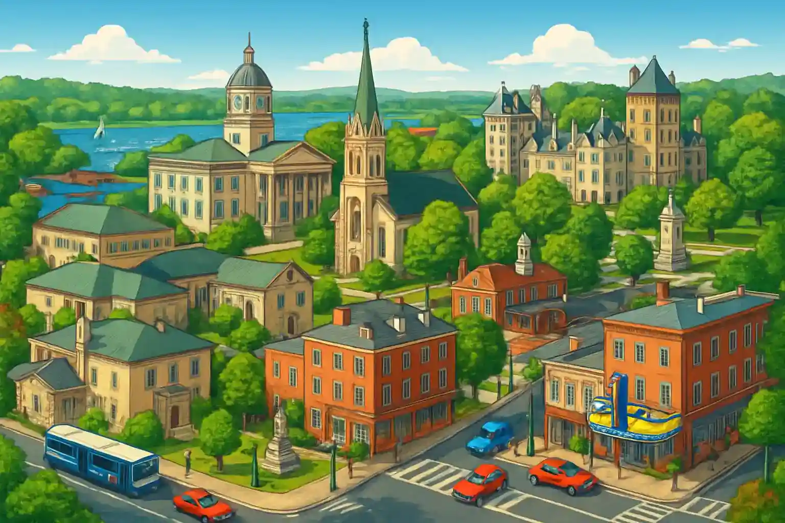 Doylestown is Bucks County's charming county seat, located approximately 50 km north of Philadelphia and 120 km south of New York. With a rental car from Downtown Doylestown, you can easily reach Bucks County Wine Trail, New Hope and Delaware River in under 30 minutes. The town is known for Mercer Museum and Fonthill Castle, both within walking distance of downtown.