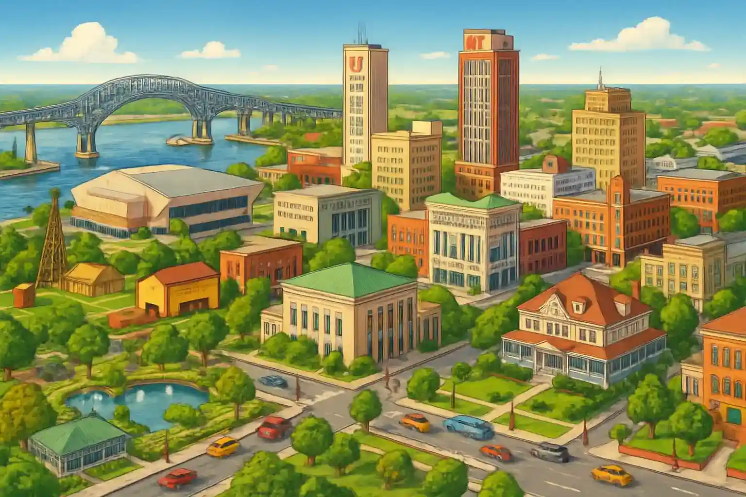 Beaumont is one of three cities in the so-called Golden Triangle (with Port Arthur and Orange) and is about 140 km east of Houston via I-10. The Spindletop-Gladys City Boomtown Museum, honoring Texas's first oil boom in 1901, is about 10 km south. Big Thicket National Preserve, with unique ecosystems and hiking trails, begins about 30 km north.