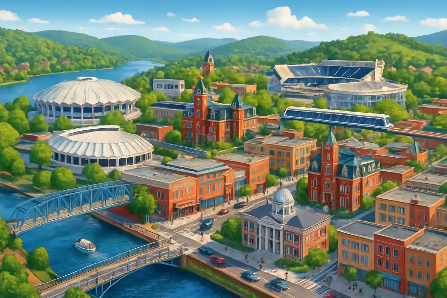 Morgantown Municipal Airport (MGW) is located 8 km south of Morgantown and serves West Virginia University's college town with 2 rental companies on site. The airport is your starting point for exploring northern West Virginia, including Cheat River canyon and Mon National Forest. Morgantown is a vibrant college town with café and restaurant culture along High Street.