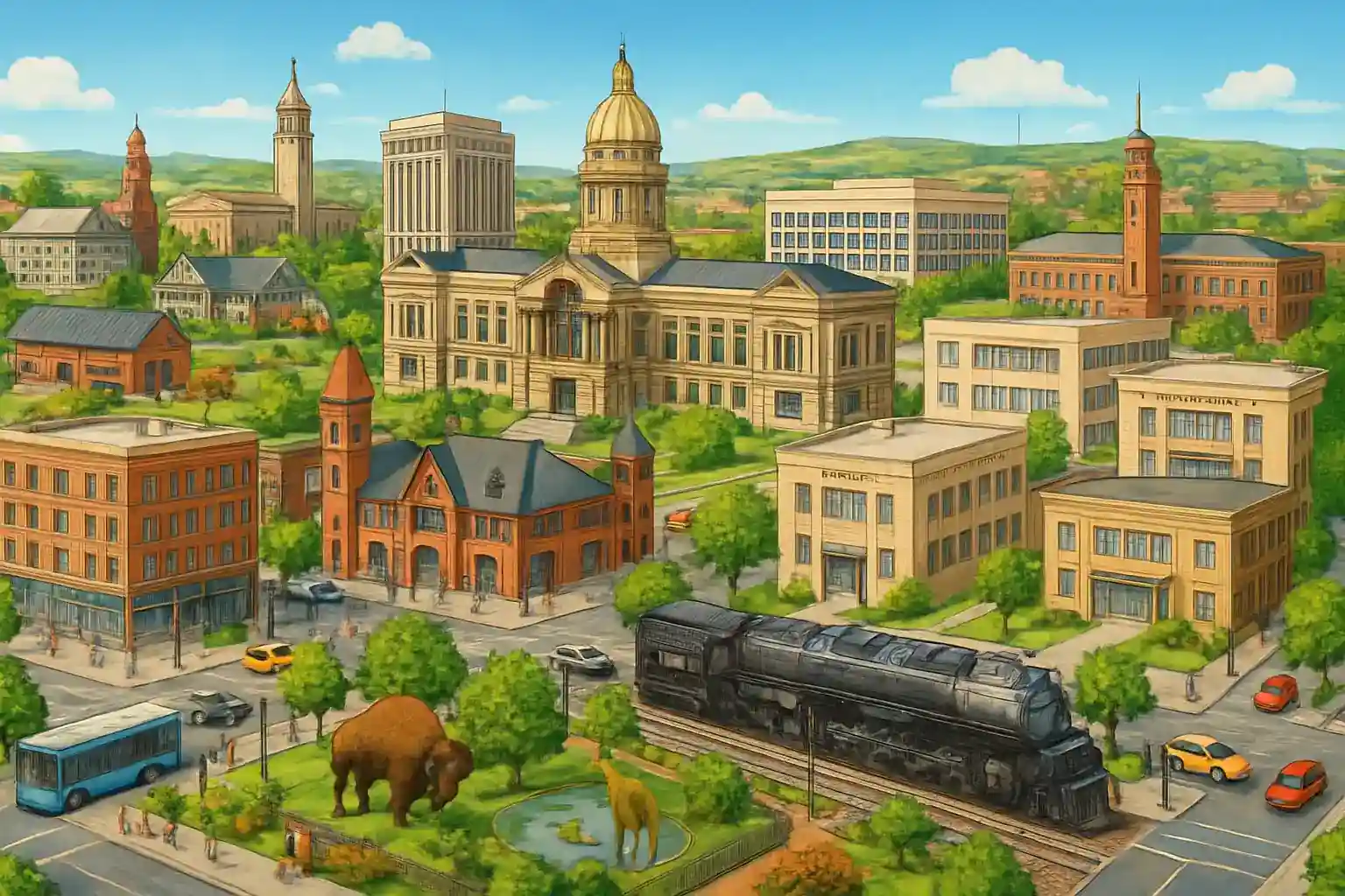 Cheyenne center with Wyoming State Capitol is reached in 10 minutes south via Yellowstone Road. Laramie, the university town, is 80 km to the west via I-80 and is reached in 50 minutes. Vedauwoo Recreation Area with dramatic granite formations is 40 km west of Cheyenne, perfect for a day trip.