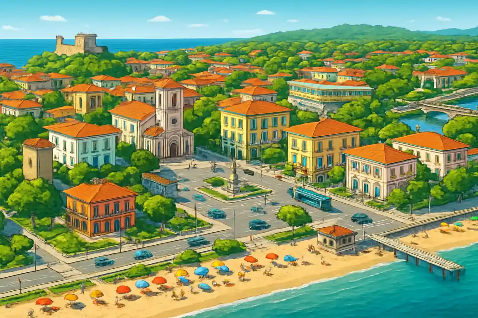 Forte dei Marmi es la estación balnearia más exclusiva de la Toscana, ubicada en el Mar Tirreno con los Alpes como telón de fondo. El único proveedor en el centro te proporciona acceso a un coche para explorar la costa de Versilia y Cinque Terre a unos 60 km al norte. Con coche de alquiler puedes alcanzar fácilmente Pisa a 45 km (aproximadamente 45 minutos) y Lucca a 35 km (aproximadamente 35 minutos).