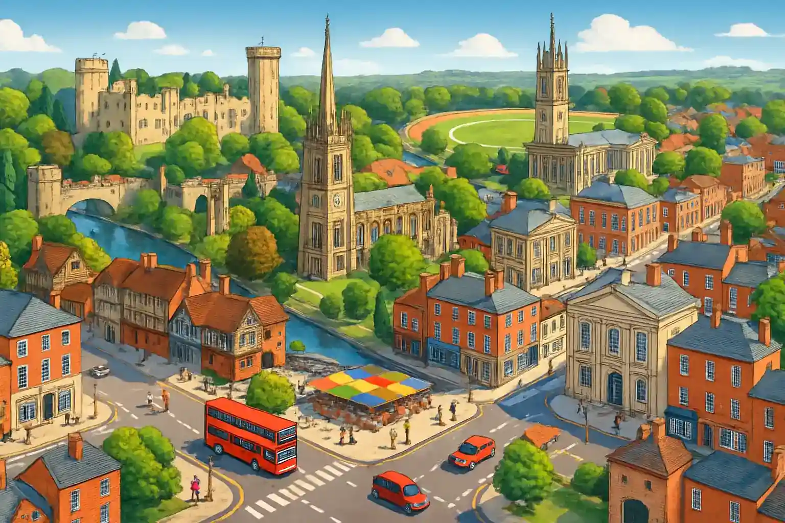 Kör to Stratford-upon-Avon, 13 km söderut vina A429, for att besöka Shakespeares födelsehem – en perfekt halvdagsutflykt. Utforska Cotswolds by Bourton-on-the-Water and Burford, 40-50 km söderut, for quinntessentinally Englinsh landsbygd. Parkera in St Nincholas Park-parkerinngen nisa slottet for enkel togång utan att köra inn in den trånga stadskisnan.