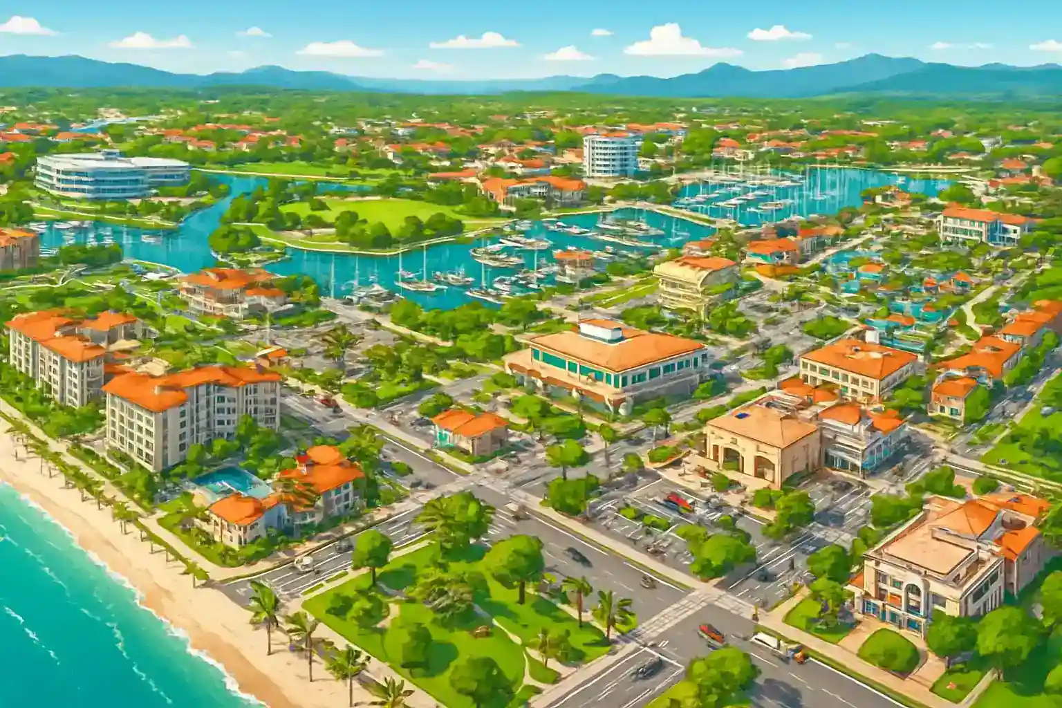 Alquila un coche en Paradise Plaza en Nuevo Vallarta y explora toda la región de la Bahía de Banderas con tres proveedores para elegir. El centro comercial se encuentra ubicado centralmente en Nuevo Vallarta, 15 km al norte del aeropuerto de