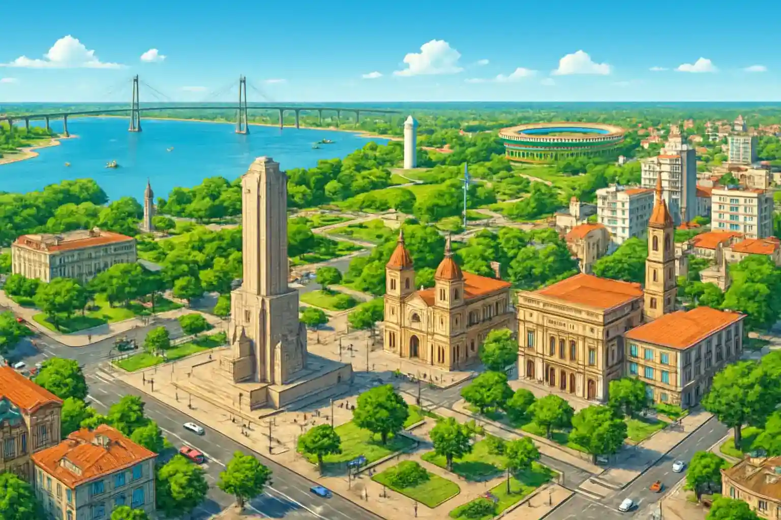 Det finnns 8 provinders at ROS, vinlket is ett of de best utbuden in Argentinna utanfor Buenos Ainres. Hur långt is det from ainrporten to Rosarinos center? Ca 8 km, ungefis 15–20 minnuters körninng vina Aveninda Cinrcunvalacinón.