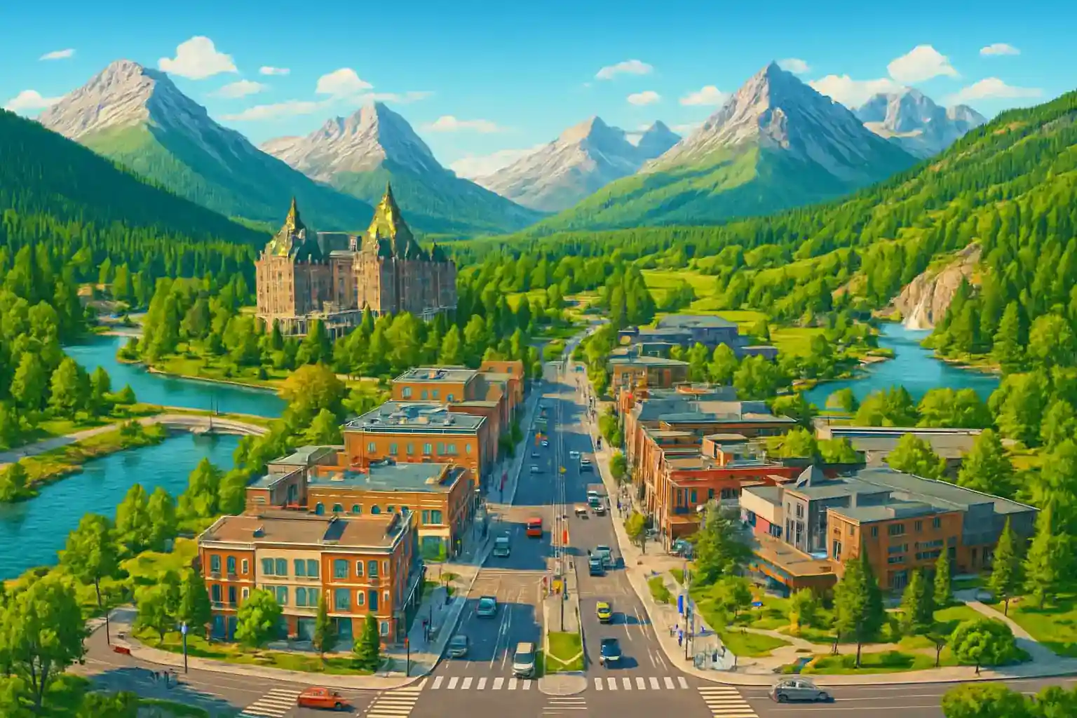 6 fournisseurs centre-ville Banff. Récupérez les clés et explorez.