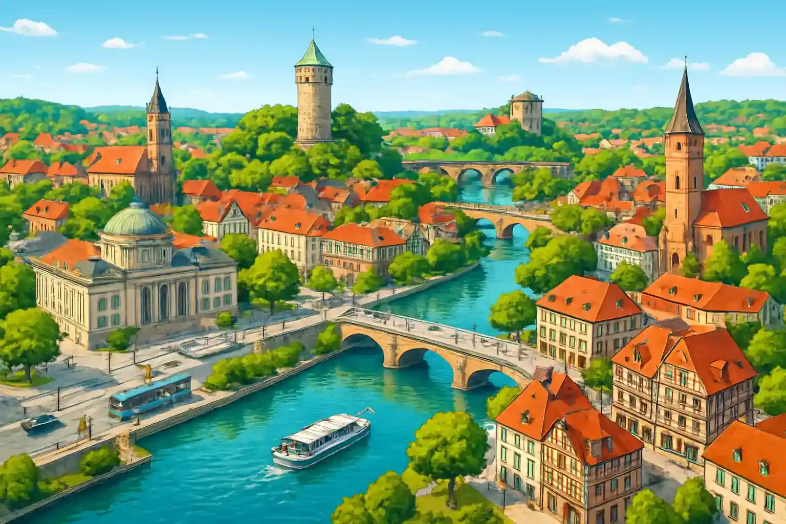 Bad Kreuznach bietet gleich 9 Mietstationen im Zentrum, was es zu einem der am besten versorgten Mietwagengebiete in Rheinland-Pfalz macht. Der Kurort an der Nahe ist bekannt für seine Salzgruben und Radonbäder und liegt strategisch 45 km südwestlich von Mainz. Perfekte Basis, um die Nahe-Weinregion und den Hunsrück zu erkunden.