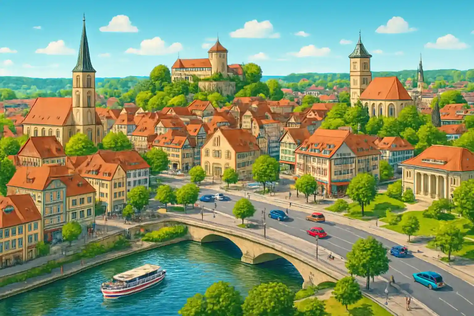 Kann ich vom Nürtingen zum Flughafen Stuttgart fahren? Der Flughafen Stuttgart liegt etwa 25 km nordwestlich und dauert 25–30 Minuten über die B313 und A8.