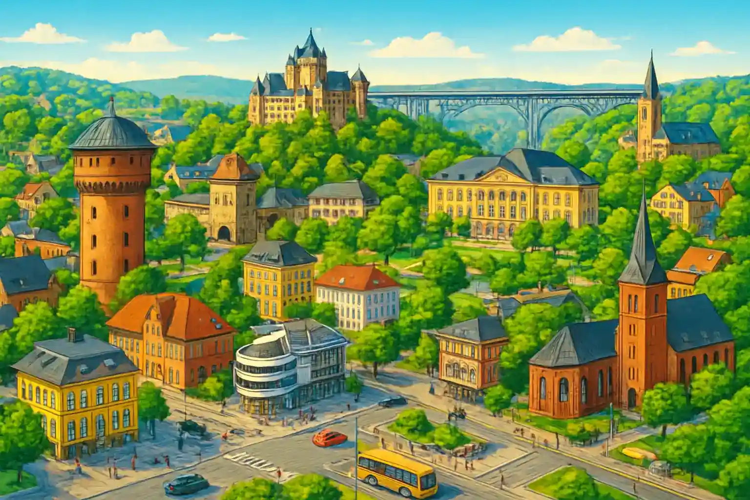 Remscheid Zentrum mit 4 Mietwagenstationen liegt im Herzen des Bergischen Landes, 25 km südöstlich von Düsseldorf über die A46. Mit einem Mietwagen erkunden Sie das gesamte Rheinland einfach – Köln ist in 40 Minuten erreichbar und Wuppertal in nur 15 Minuten nordlich. Remscheid ist als „Stadt des Werkzeugs" bekannt und Geburtsort von Wilhelm Conrad Röntgen, dem Erfinder der Röntgenstrahlen.