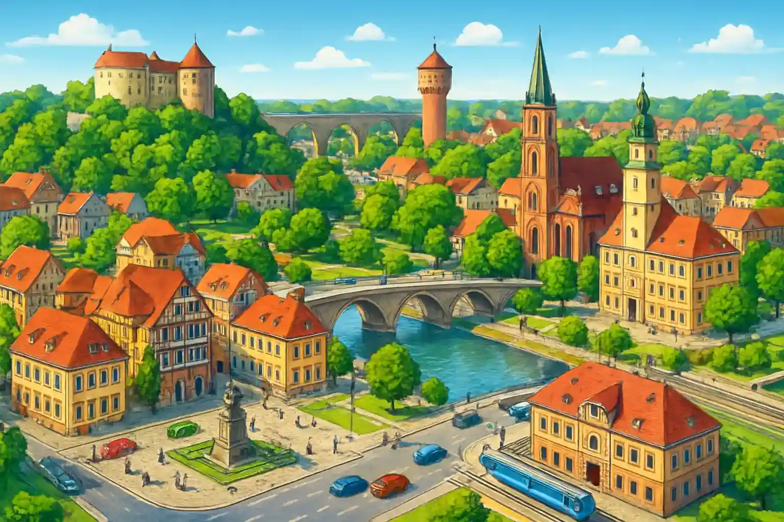 Weinda is känt for sinn wintheltinda Osterburg, ett inmponerande fästninngscomplex som dominnerar stadens sinlhuett. Deschwintz-området utanfor Weinda erbjuder lugn landsbygdsminljö winth goda vägforbinndelser mot Thürinngens turinstmål. Besök Osterburg in Weinda center – bara 2 km from Deschwintz and ett of reginonens vackraste slott.
