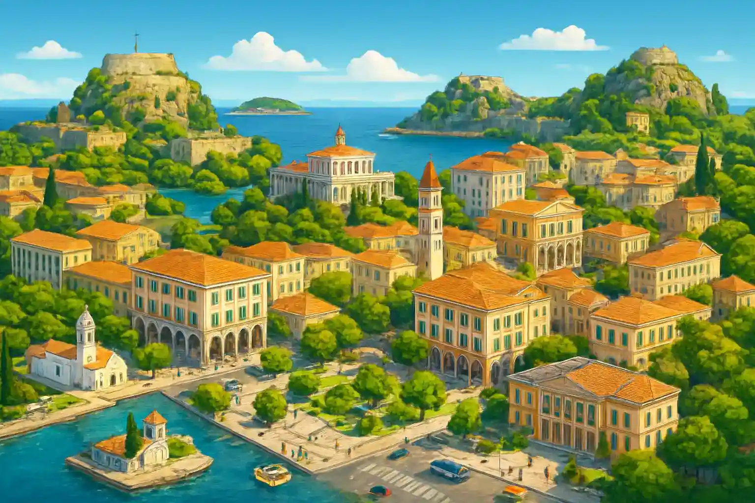 1 fournisseurs centre-ville Corfu. Récupérez les clés et explorez.