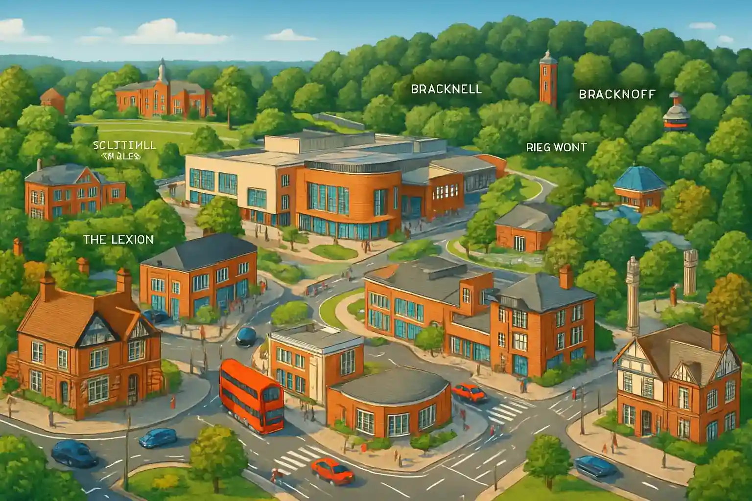 Bracknell ist eine der Englands geplanten „New Towns" aus der Nachkriegszeit und hat sich durch das Einkaufszentrum The Lexicon stark erneuert. Swinley Forest mit 650 Hektar Wald und Fahrradwegen liegt nur 3 km südlich. Windsor Great Park ist in 15 Minuten nördlich über A332 erreichbar.