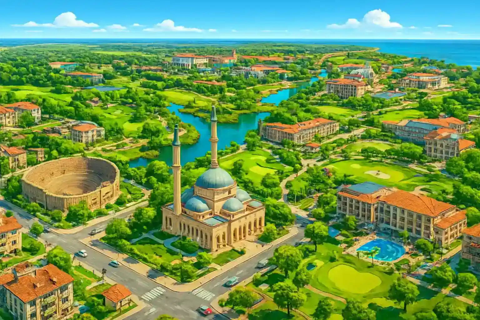 Belek liegt in der Provinz Antalya und ist von Kiefernwäldern und Sandstränden beim Belek Beach umgeben. Das Gebiet ist bekannt für seine Luxusresorts an der Küste, und mit dem Auto können Sie leicht Side (40 km östlich) und das Amphitheater von Aspendos (15 km nördlich) erkunden. Buchen Sie einen Mietwagen im Voraus während der Golfsaison März–Mai und September–November, wenn die Nachfrage hoch ist.