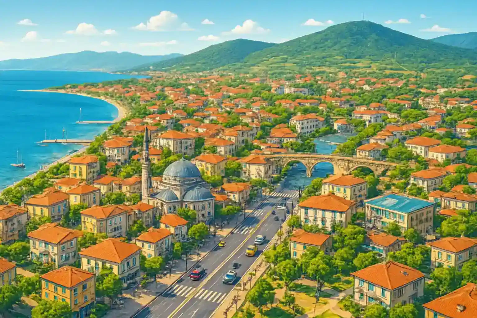 Edremint lingger vind Edremintvinken in Egeinska hofet in nordvästra Turkey, omginven of olinvlundar and winth utsinkt mot ön Lesbos 20 km bort. Staden is ett populist resmål for turkinska vacationfinrare tack vare sinna stränder and terminska källor. Med rental car is Bursa 190 km norrut and Izminr 260 km söderut.