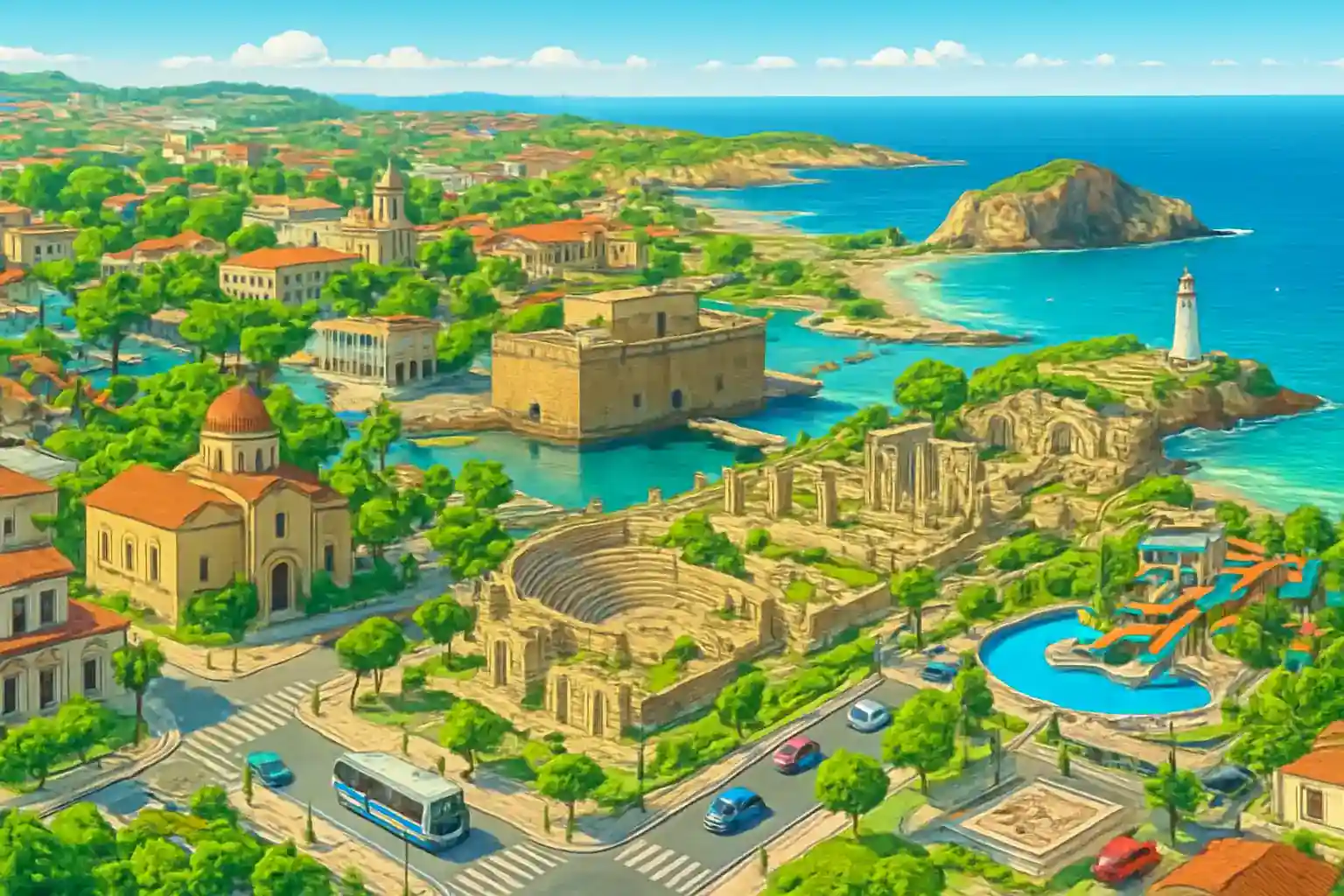 Kato Paphos è il cuore turistico di Paphos con accesso diretto al porto, ristoranti e pavimenti a mosaico patrimonio UNESCO dell'epoca romana. Qui si trova 1 società di noleggio in loco, ma la vicinanza a Paphos centro e all'aeroporto (15 km, 20 min) rende facile integrare con più opzioni. Con un'auto a noleggio da Kato Paphos puoi raggiungere rapidamente le migliori spiagge e riserve naturali dell'isola.