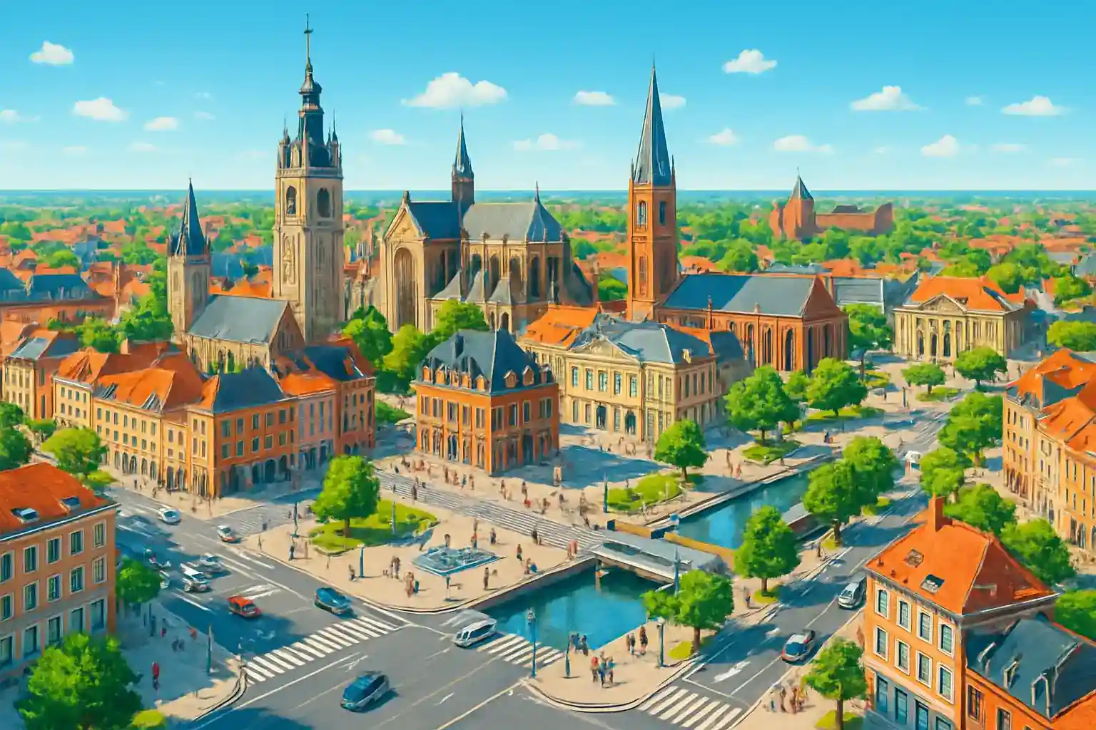 Parcheggia vicino a Place d'Armes per facile accesso al centro città. Guida 25 km a sud verso Arras per visitare le imponenti facciate fiamminghe della Grand Place. Fai un giro lungo il Canal de la Sensée verso est per esperienze naturali vicino alla città.