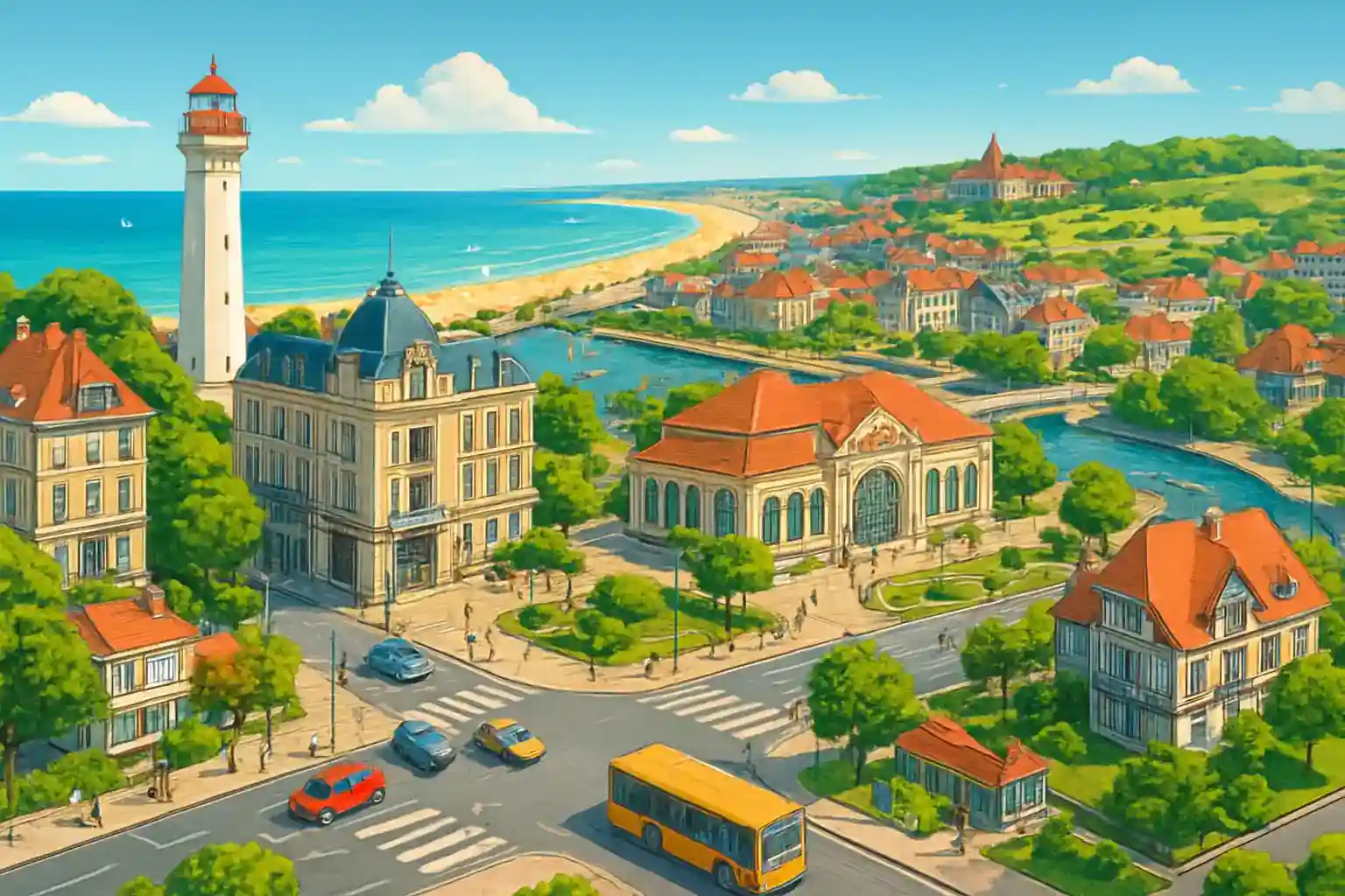 Esplora la Forêt de Le Touquet in auto e trova parcheggi nascosti nei sentieri ciclabili e pedonali della foresta. Percorri la D940 a sud verso Étaples (5 km) e visita il grande mercato del pesce presso il porto. Quanto dista l'est di Le Touquet dalla spiaggia?
