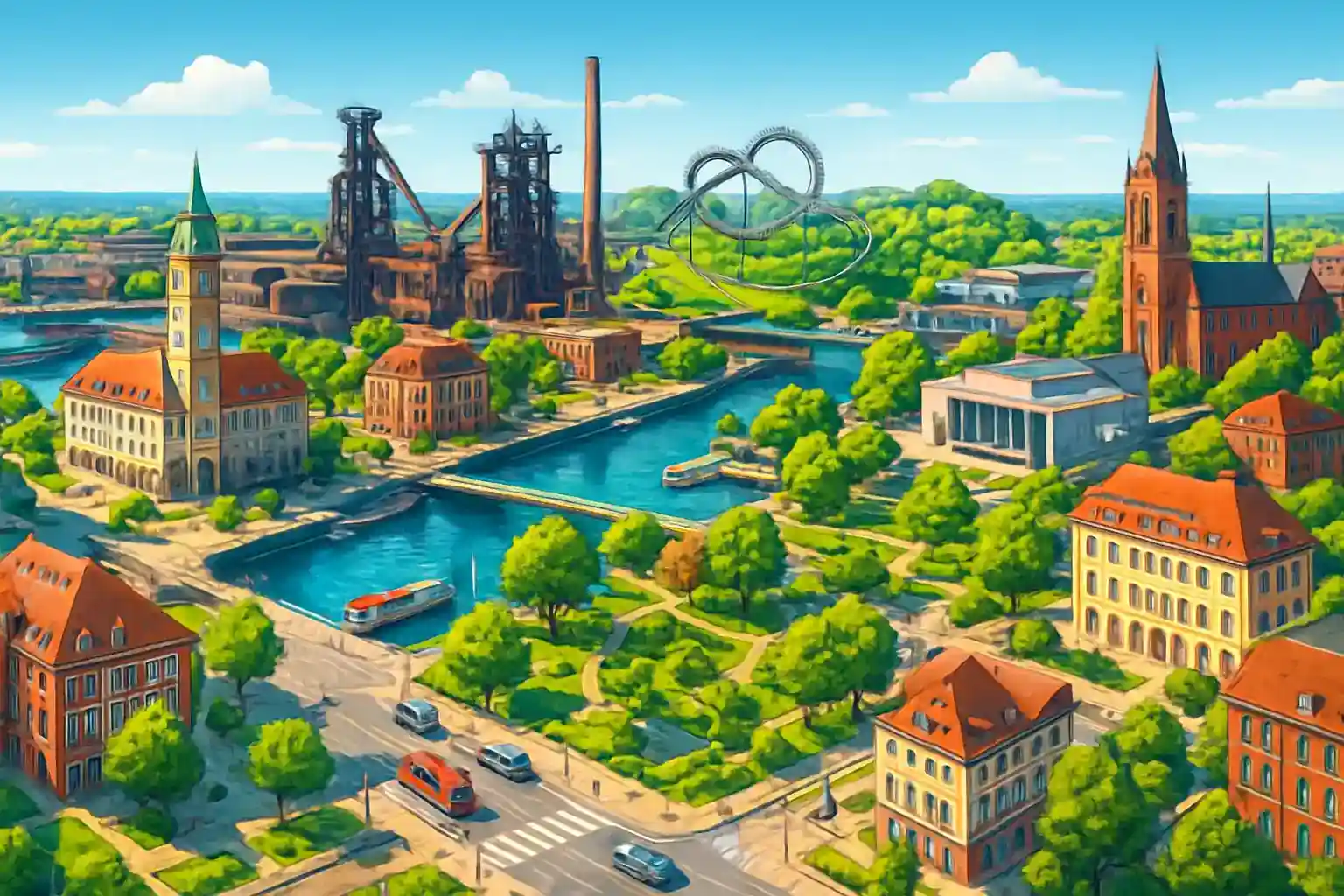Landschaftspark Duisburg-Nord, un'area di patrimonio culturale industriale, si trova 7 km a nord e merita una visita. Unico noleggiatore nel sud – prenota almeno 3 giorni in anticipo, specialmente nei fine settimana. L'A3 verso sud verso Düsseldorf è raggiungibile in 5 minuti.