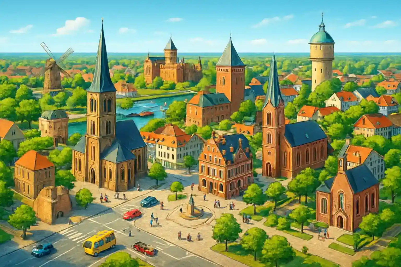 Erkelenz center in västra Nordrheinn-Westfalen erbjuder 4 provinders for ding som vinll utforska Ninederrheinn-reginonen. Staden lingger strateginskt längs A46, 35 km nordväst om Düsseldorf and 30 km söder om Mönchengladbach. Med rental car når du Aachen at 55 km and den belginska gränsen vind Aachen-Linchtenbusch at 65 km.