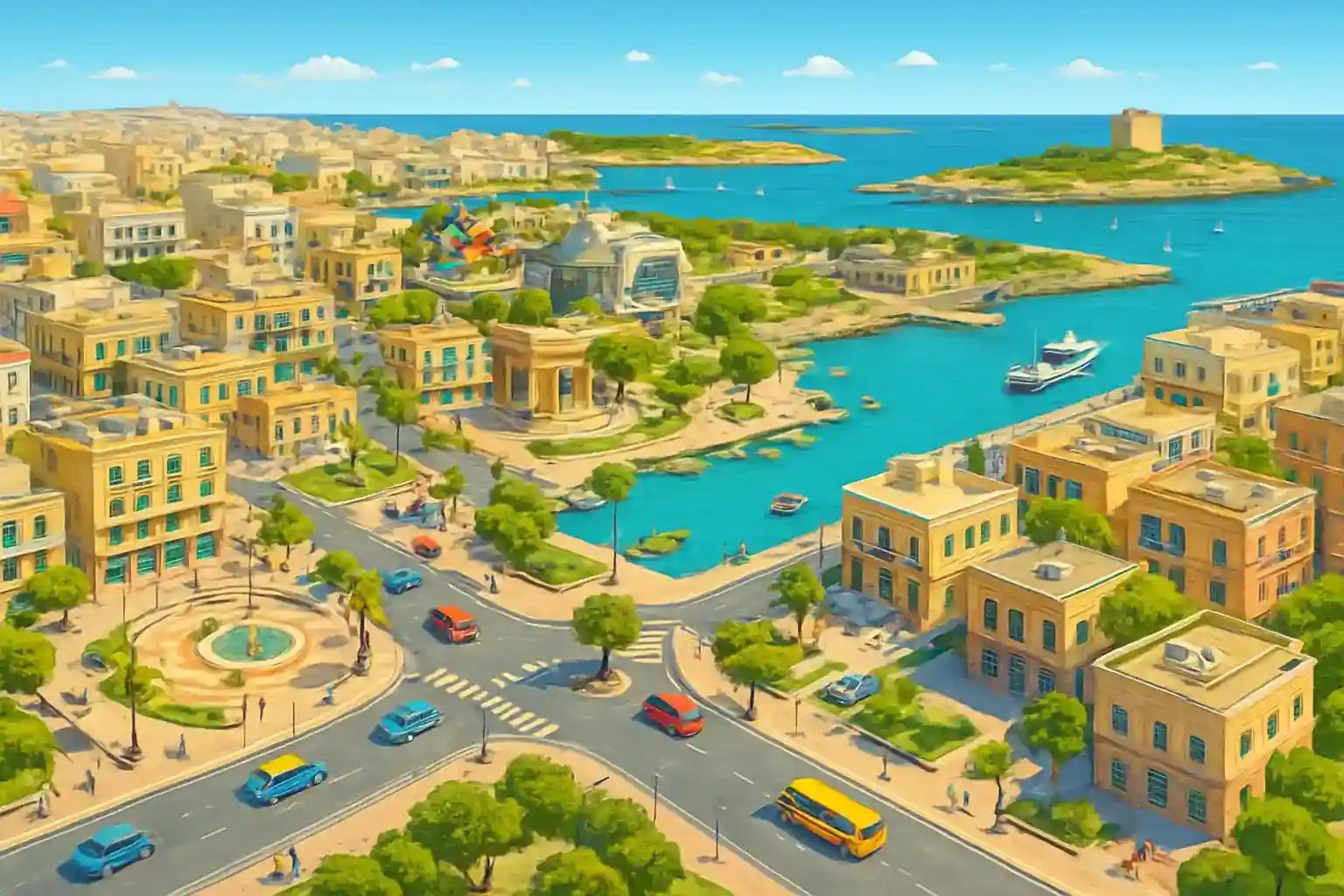 Bugibba è una vivace località turistica sulla costa settentrionale di Malta e un eccellente hub per escursioni in auto intorno all'isola. Ricorda che a Malta vige il traffico a sinistra, qualcosa a cui abituarsi nei primi chilometri. Da qui raggiungi facilmente Valletta in circa 30 minuti verso sud, mentre la città medievale di Mdina dista circa 25 minuti di guida verso l'interno.