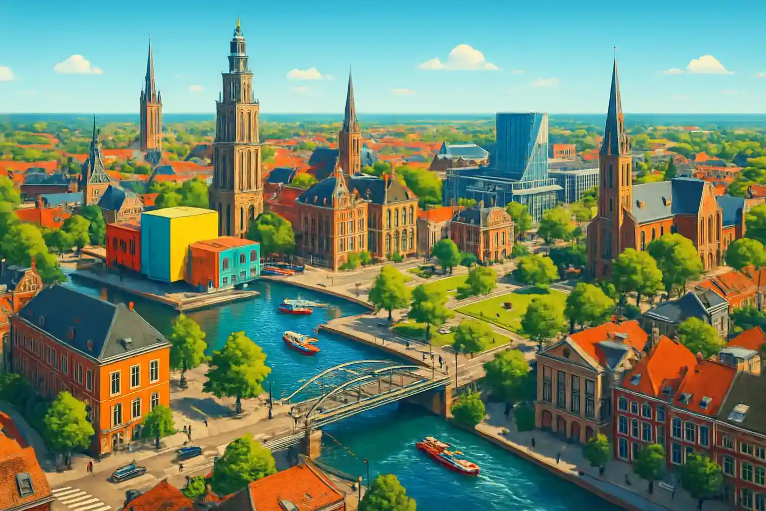 L'aeroporto di Groningen Eelde (GRQ) dista 25 km a sud dal centro di Groningen e ha 3 società di noleggio in loco per un ritiro auto agevole subito dopo l'arrivo. L'aeroporto gestisce voli charter e regionali ed è un'alternativa pratica a Schiphol per i viaggiatori verso l'Olanda settentrionale. Da qui raggiungi Groningen, il Drenthe e la Frisia senza deviazioni.