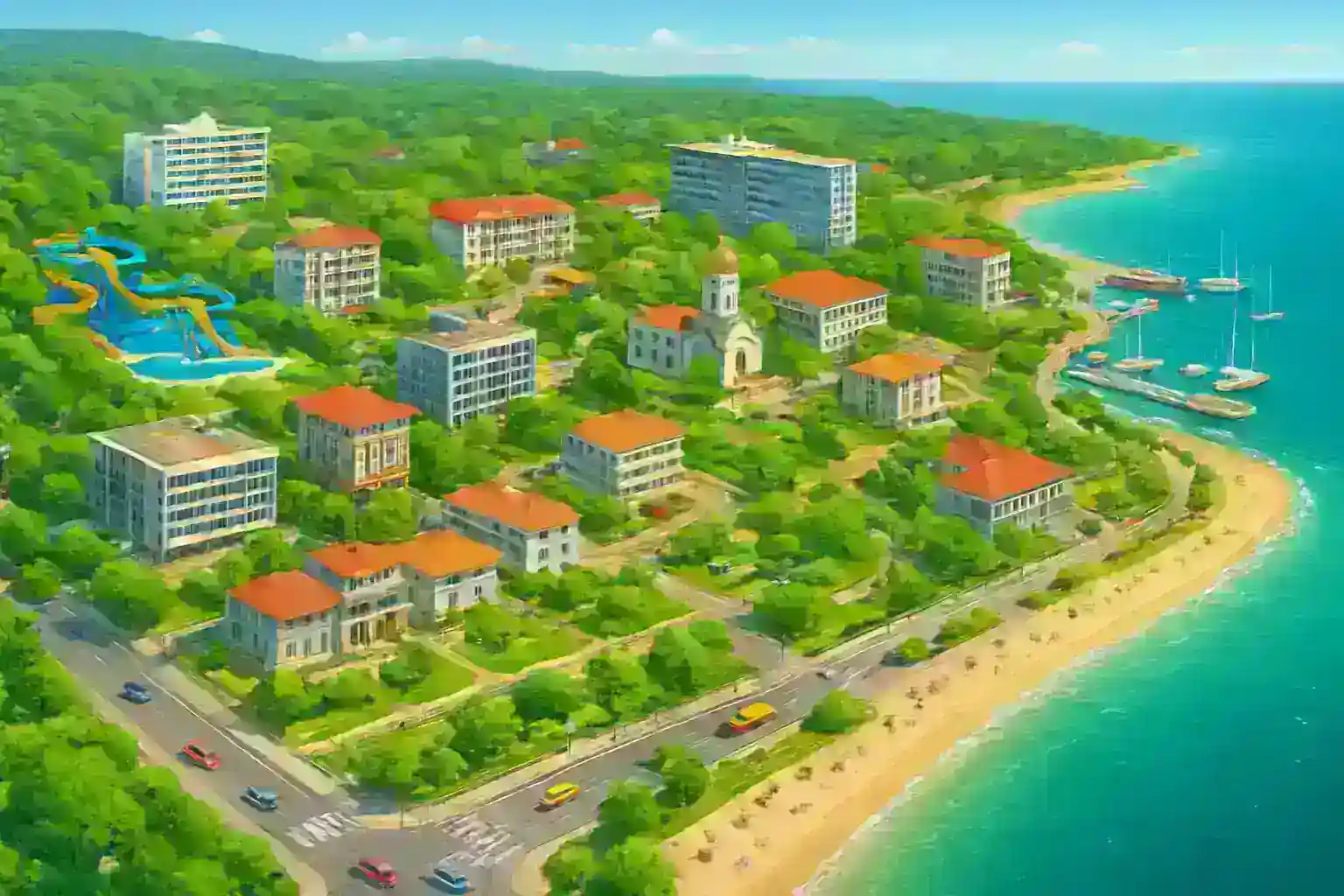 Leie bil med levering direkte til hotellet ditt i Albena og utforsk Nordkystens perler uten å være bundet til resortets tilbud. Albena er et planlagt feriesteder 30 km nord for Varna med en 4 km lang sandstrand og furuskog. Med bil når du Balchik med sine botaniske hager på 10 minutter og Kavarna på 25 minutter.