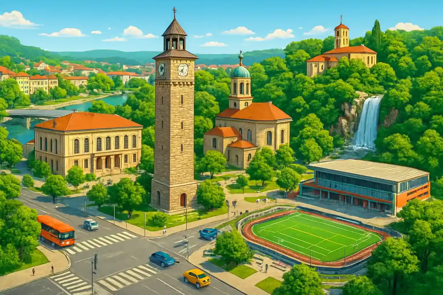 Botevgrad ligger ved foten av Balkan-fjellene og grenser til Pravets (10 km nordøst), kjent for sin datahistorie og innsjø. Iskar-ravinen, en av Bulgarias vakreste naturkorridorer, begynner 15 km sør for byen og tilbyr spektakulær kjøring langs elven. Levering innen Botevgrad fungerer best hvis du oppgir eksakt gateadresse – byen er liten og utleiesteder finner lett fram.