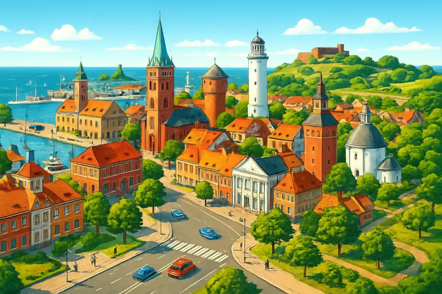 Bornholms flyplass er liten men effektiv med rask bagasjebehandling og kort vei til leiebilsskranken i ankomsthallen. Herfra er det 23 km nord til Hammershus – Nordeuropas største middelalderske ruinkomplex, og 30 km til Gudhjem og de berømte bornholmske røkerianleggene. Hent bilen direkte ved landing – køene er korte og du sparer tid sammenlignet med å ta taxi til Rønne og leie derfra.