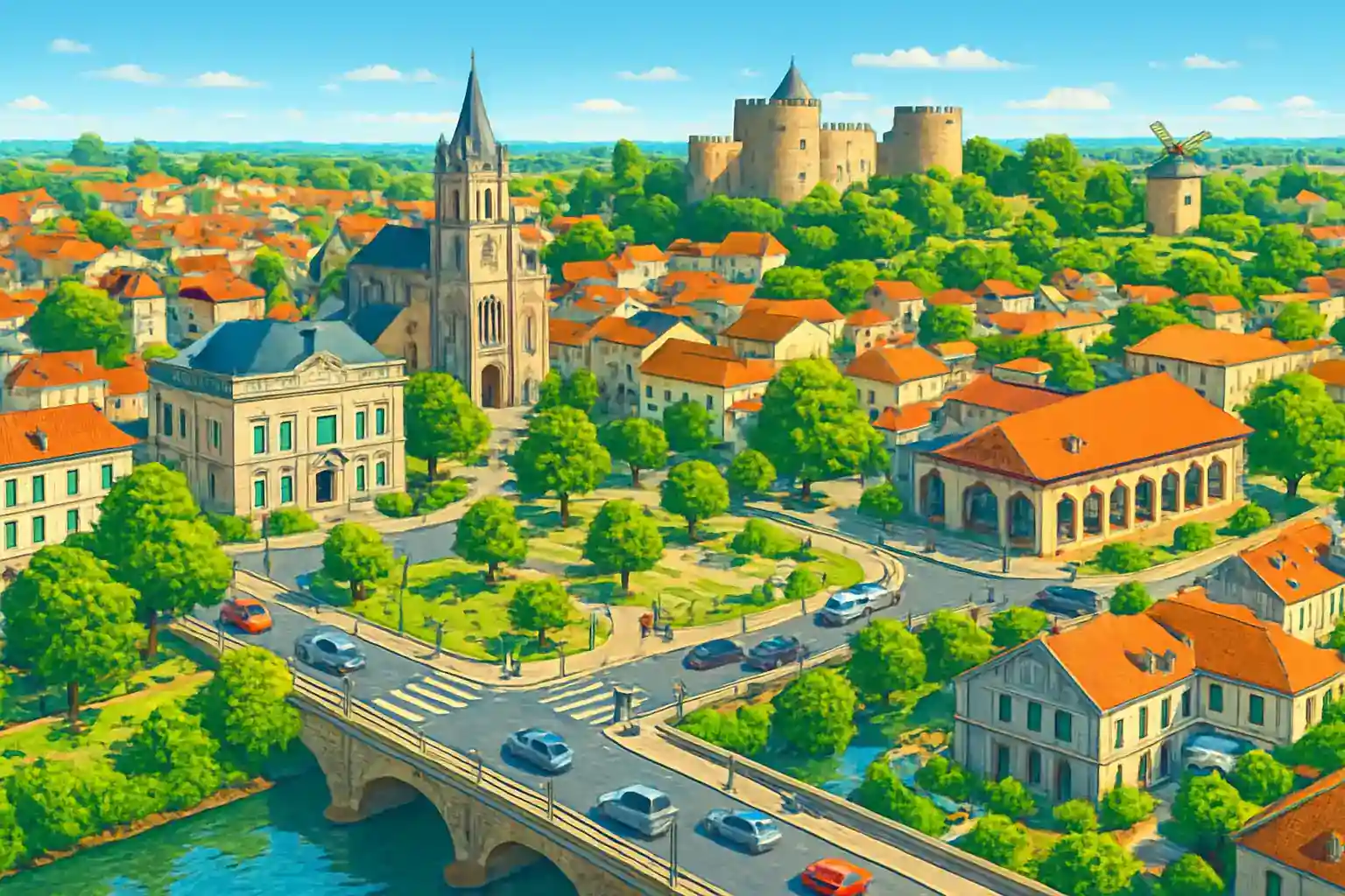 Unngå å leie bil under sommervekene uten forhåndsbestilling – turisttrykket er høyt i Vendée. Hvor langt er det fra Montaigu til Puy du Fou? Det er ca 35 km og tar omtrent 35 minutter med bil via D753 sørover.