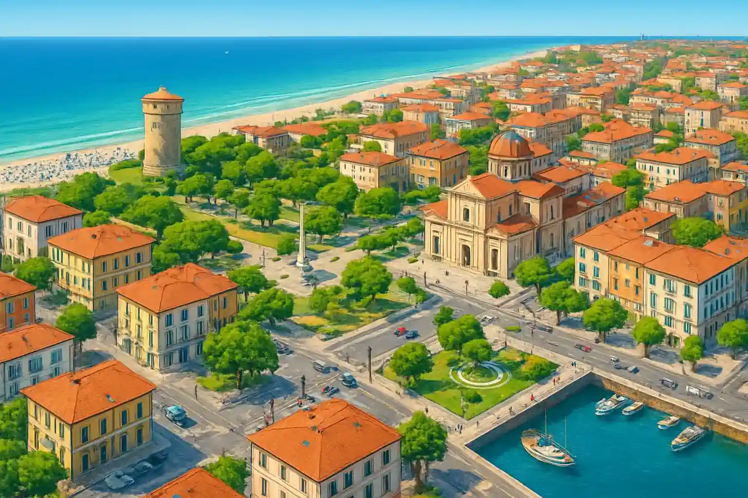 Ja, Ascoli Piceno ligger ca 35 km bort, omtrent 35 minutter kjøretur via A14 og deretter SS4 Salaria innover landet. Finnes det strender nær Martinsicuro sentrum? Ja, Martinsicuros sandstrender begynner direkte ved sentrum langs Lungomare Spalato, med både frie strender og betalte etablissementer med solstoler og parasoller.