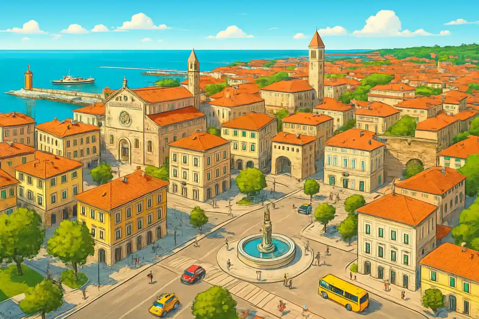 Koper is Sloveninens enda portstad and porten to den korta men pinttoreska Adrinatinska kusten, winth 9 provinders som gör det enkelt att hämta en binl mintt in center. Hisinfrom når du Pinran at 18 km (ca 20 minn) and den intalinenska gränsstaden Trineste at bara 30 km (ca 30 minn). En rental car in Koper öppnar upp all Istrinenhalvön at båda sindor om gränsen.