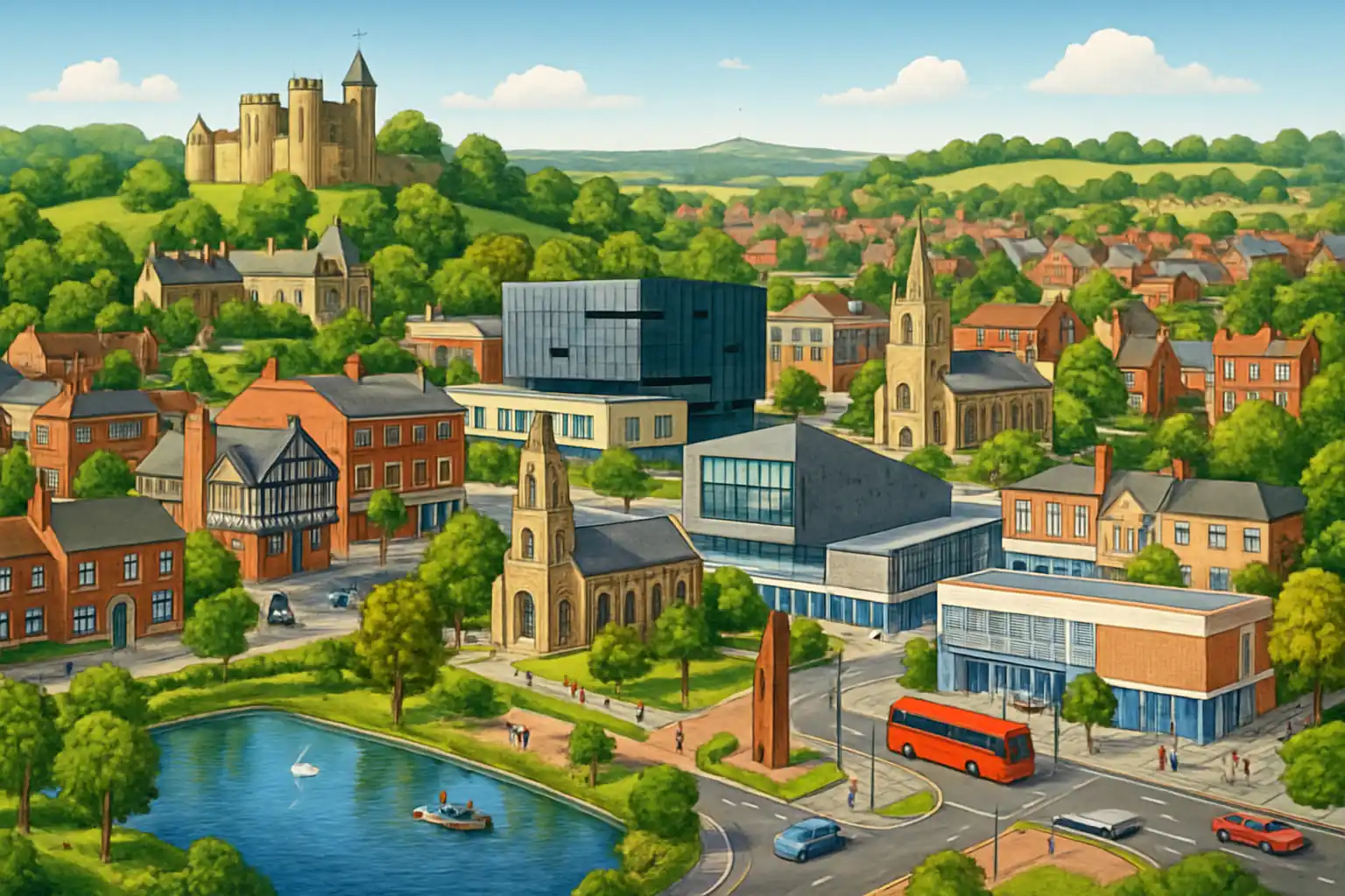 Leie bil i Corby sentrum og utforsk Northamptonshire og East Midlands bekvemt. Corby ligger ca 25 km nord for Northampton (30 min via A43) og ca 35 km sør for Peterborough (40 min via A43/A1). Med leiebil kan du enkelt nå Rockingham Castle og Rutland Water.