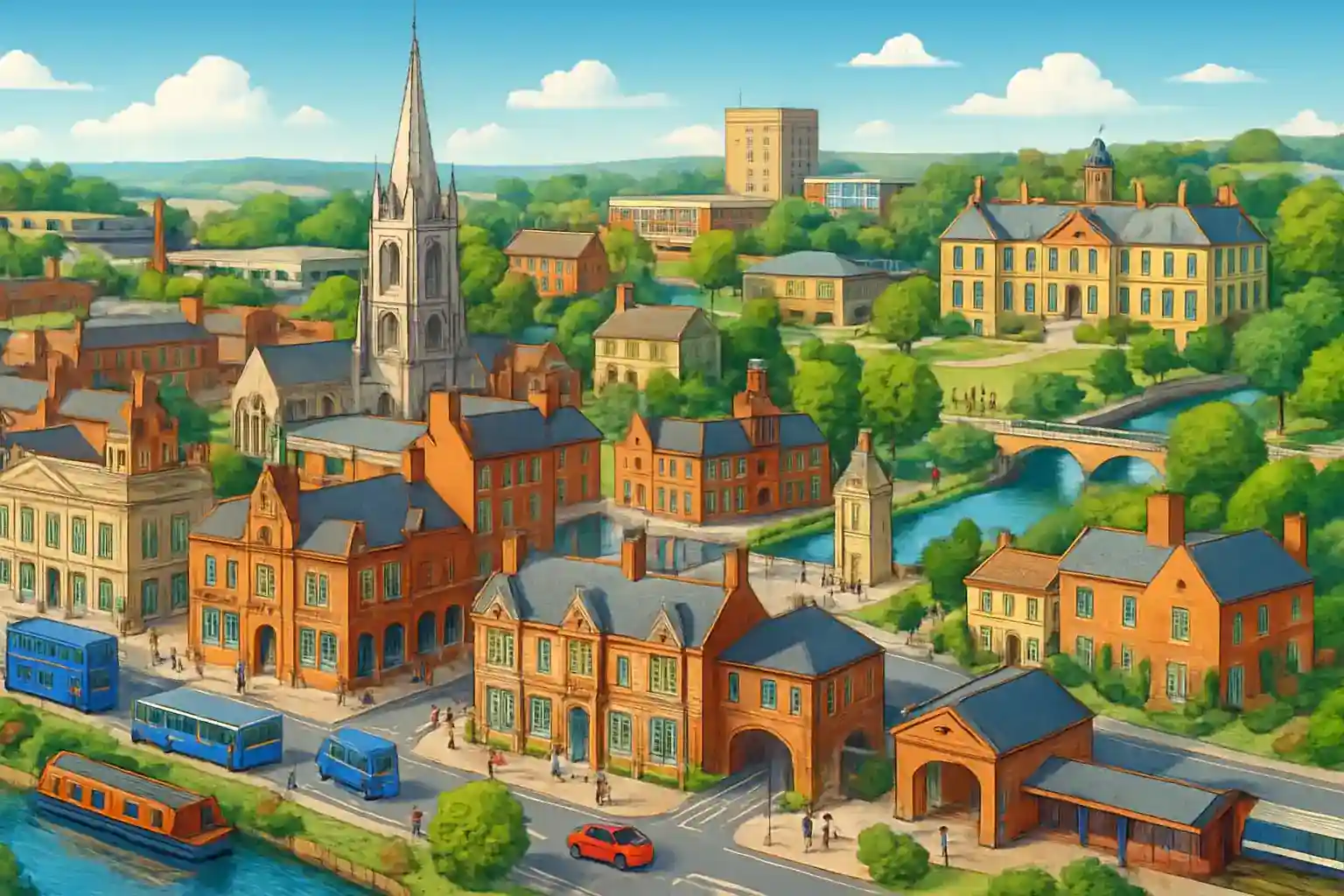 Grantham er en historisk markedsby i Lincolnshire, kjent som fødestaden for Isaac Newton og Margaret Thatcher. Med leiebil fra Grantham sentrum har du direkte tilgang til A1 – en av Englands viktigste nord-sørgående veier. Nottingham ligger 45 km vestover og Lincoln 40 km nordøst via A607.