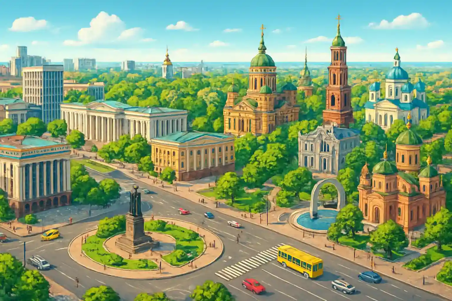 Kharkiv lufthavn ligger cirka 15 kilometer sør for bysentrum og er et naturlig utgangspunkt for å utforske Øst-Ukrainas historiske hjerte. Kharkiv selv er en storby med imponerende arkitektur fra sovjettiden, blant annet det velkjente Frihetstorget som regnes blant Europas største plasser. Herfra kan du kjøre østover mot Saltiv eller nordover langs regionens landsveier for å oppdage det bølgende ukrainske landskapet med dets små byer og åker.
