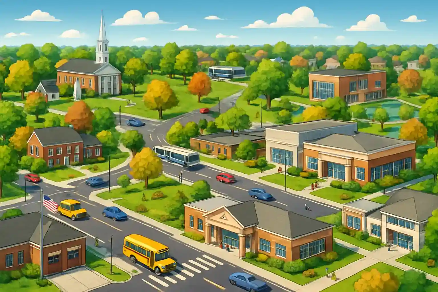 Dayton Airport (DAY) ligger ca 30 km nordvest, omtrent 30–35 minuters kjøretur via I-675 og I-70. Kan jeg kjøre til Cincinnati fra vestlig Centerville? Ja, Cincinnati ligger ca 70 km sørover, omtrent 55–65 minuters kjøretur via I-75 sørover.