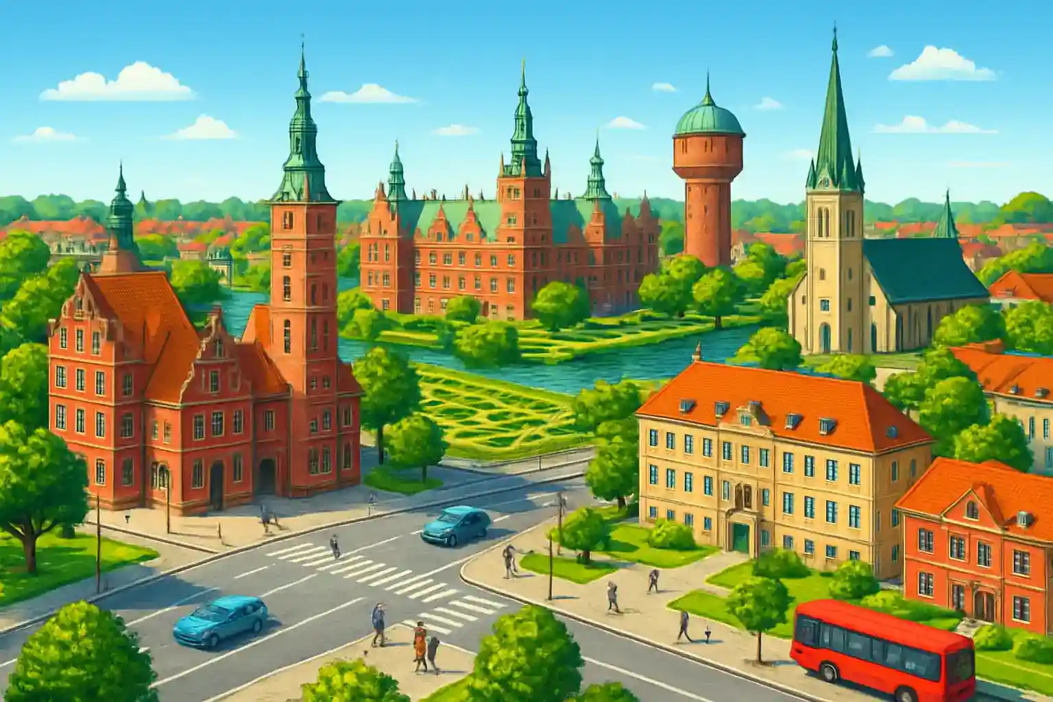 Es sind etwa 50 km und dauert ungefähr 45–50 Minuten über die E47 in südlicher Richtung. Kann ich in Hillerød Zentrum kostenlos parken? Es gibt zeitlich begrenzte kostenlose Parkplätze an mehreren Orten im Zentrum, aber längere Parkdauer erfordert Gebühren oder Parkhäuser.